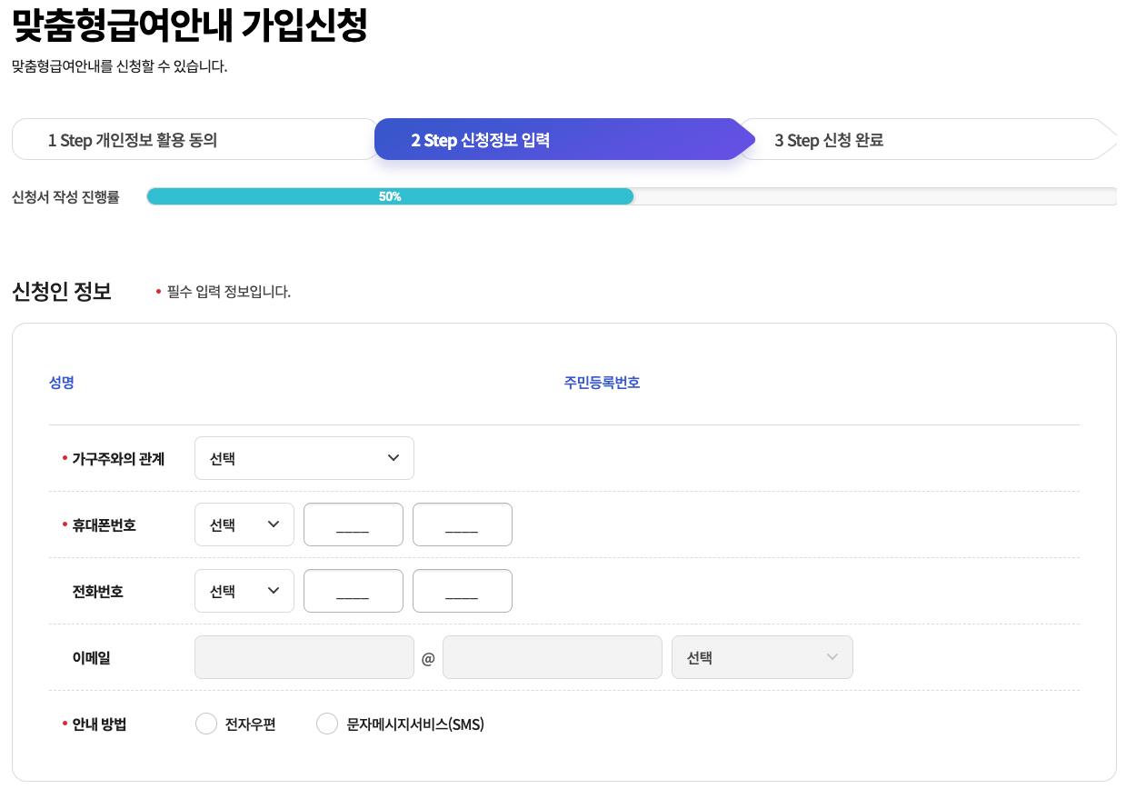 가입자의 연령, 가구 구성원, 경제상황 등을 기준으로 받을 수 있는 맞춤형 복지서비스를 찾아서 신청방법을 안내해 주는 제도입니다.